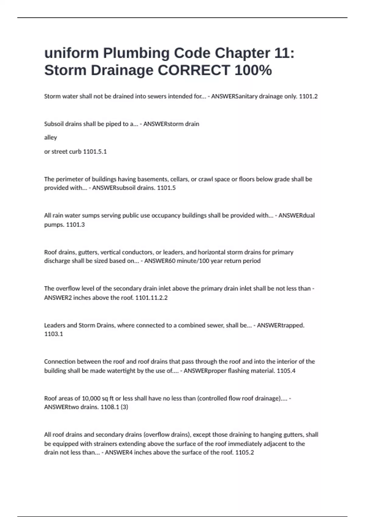 Storm water shall not be drained into sewers intended for... - ANSWERSanitary drainage only. 1101.2