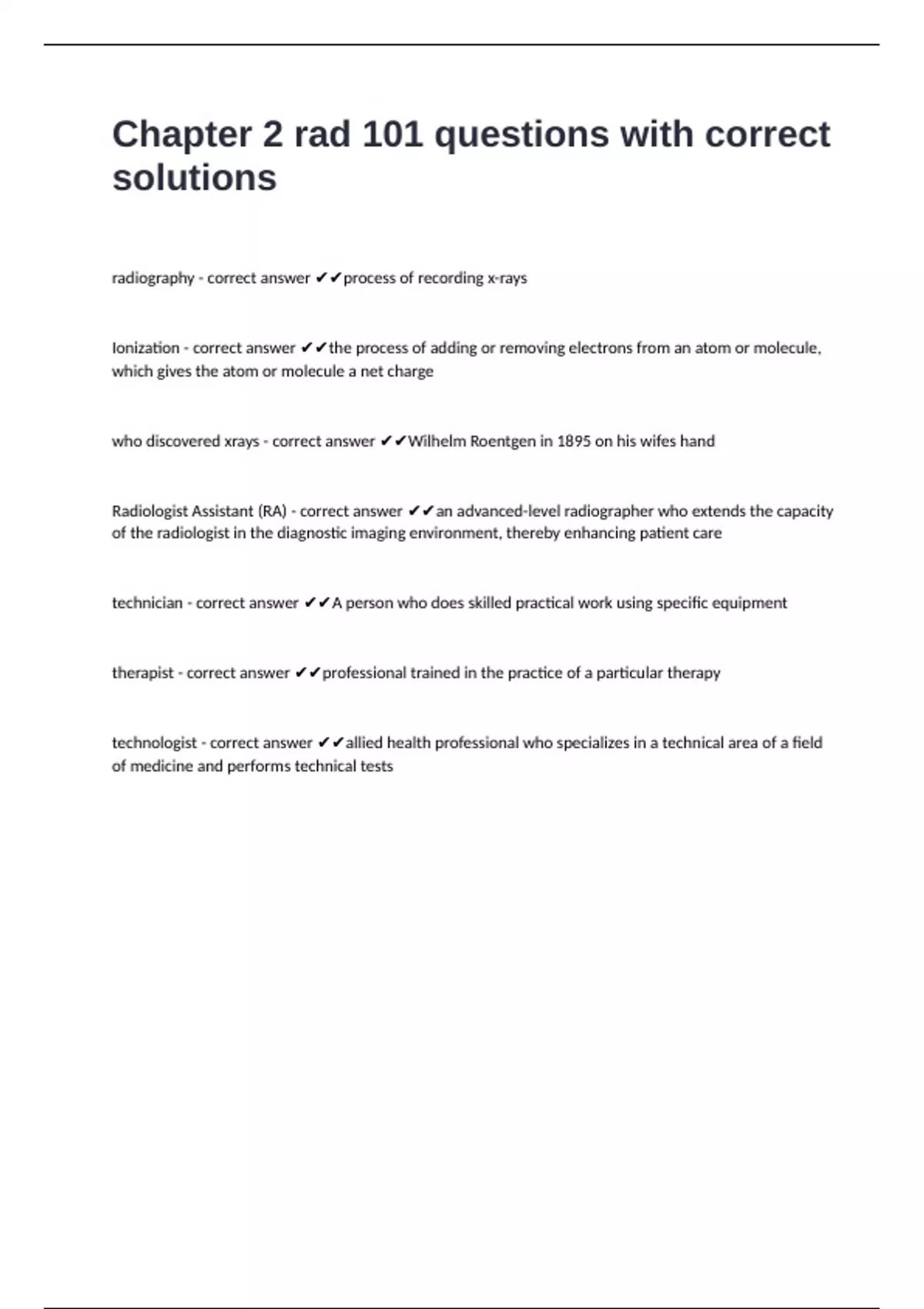 Radiologist Assistant (RA) - correct answer ✔✔an advanced-level radiographer who extends the capacity