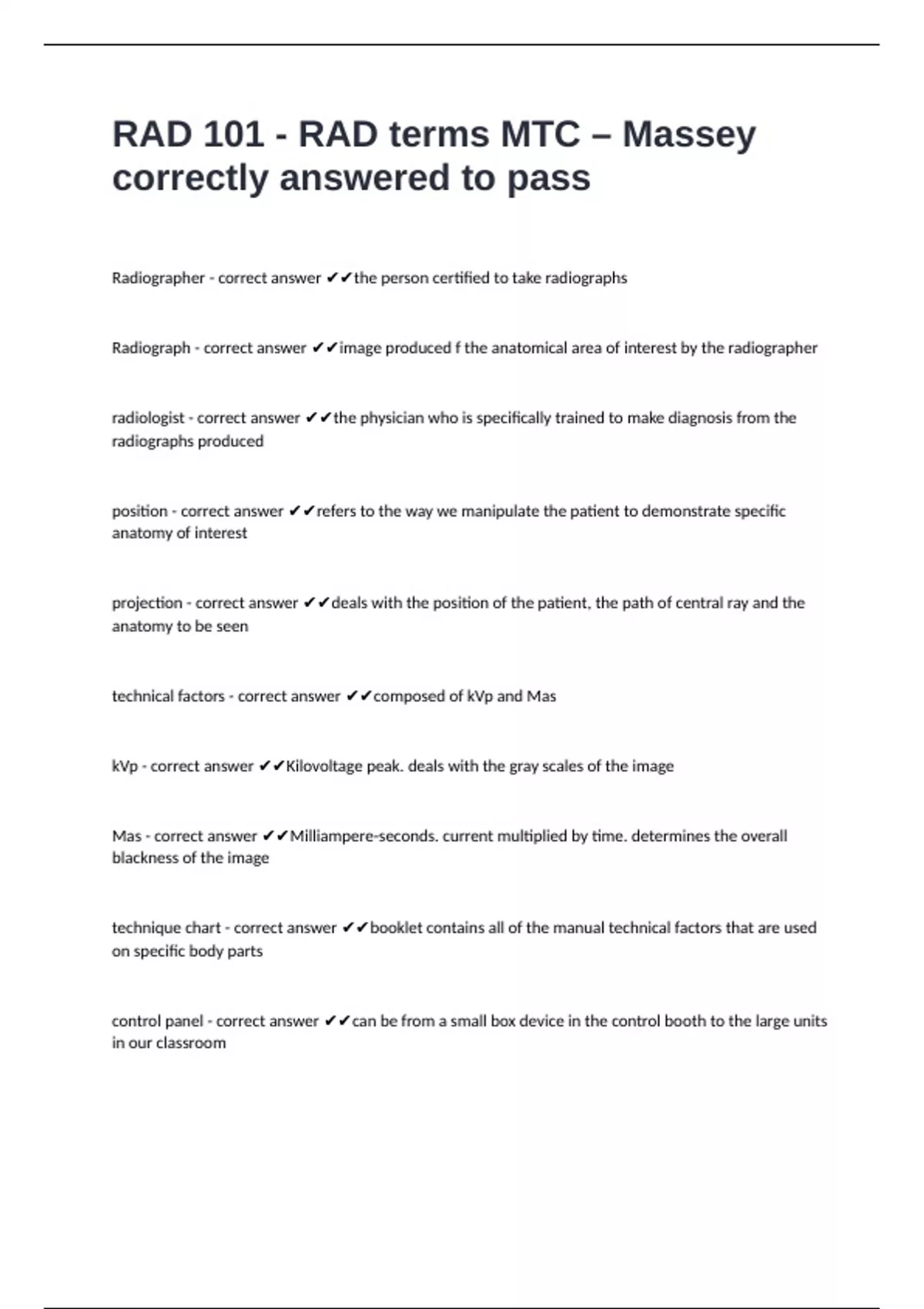 kVp - correct answer ✔✔Kilovoltage peak. deals with the gray scales of the image