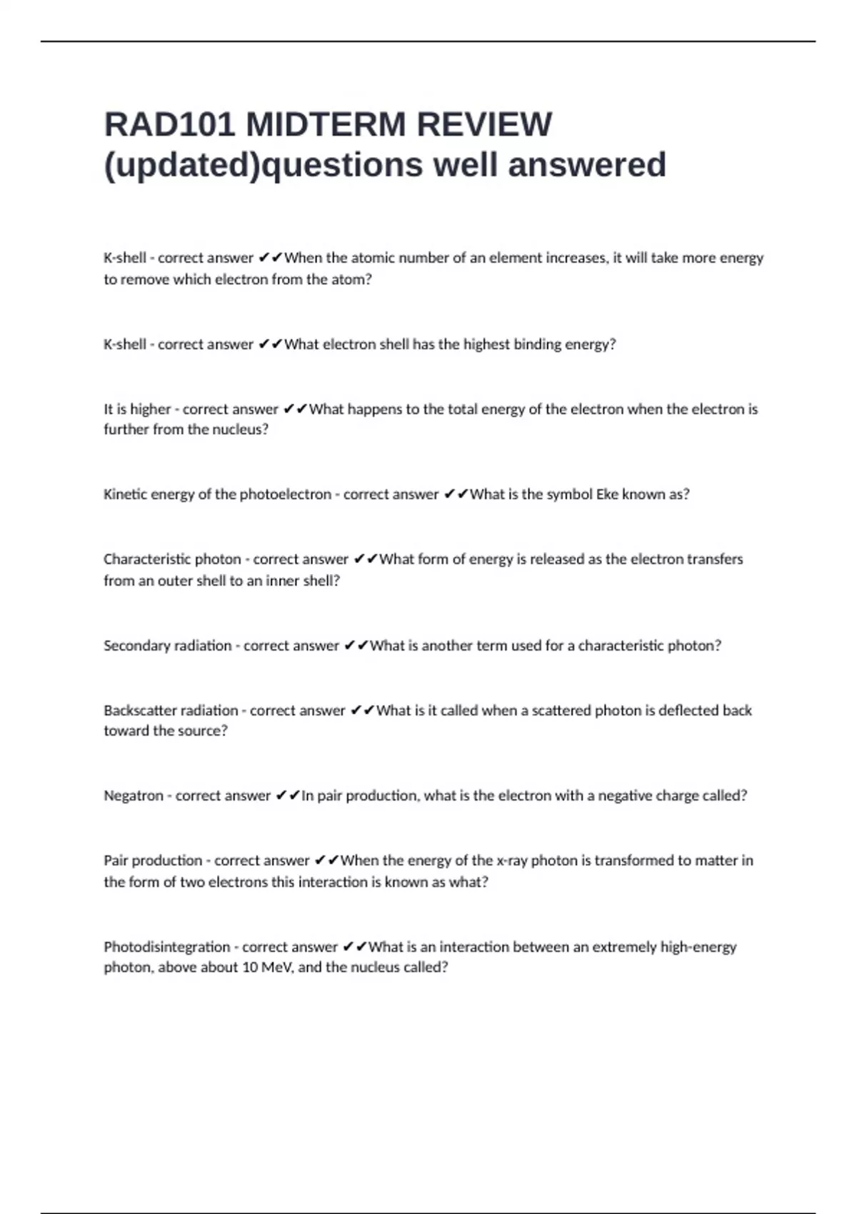 RAD101 MIDTERM REVIEW (updated)questions well answered