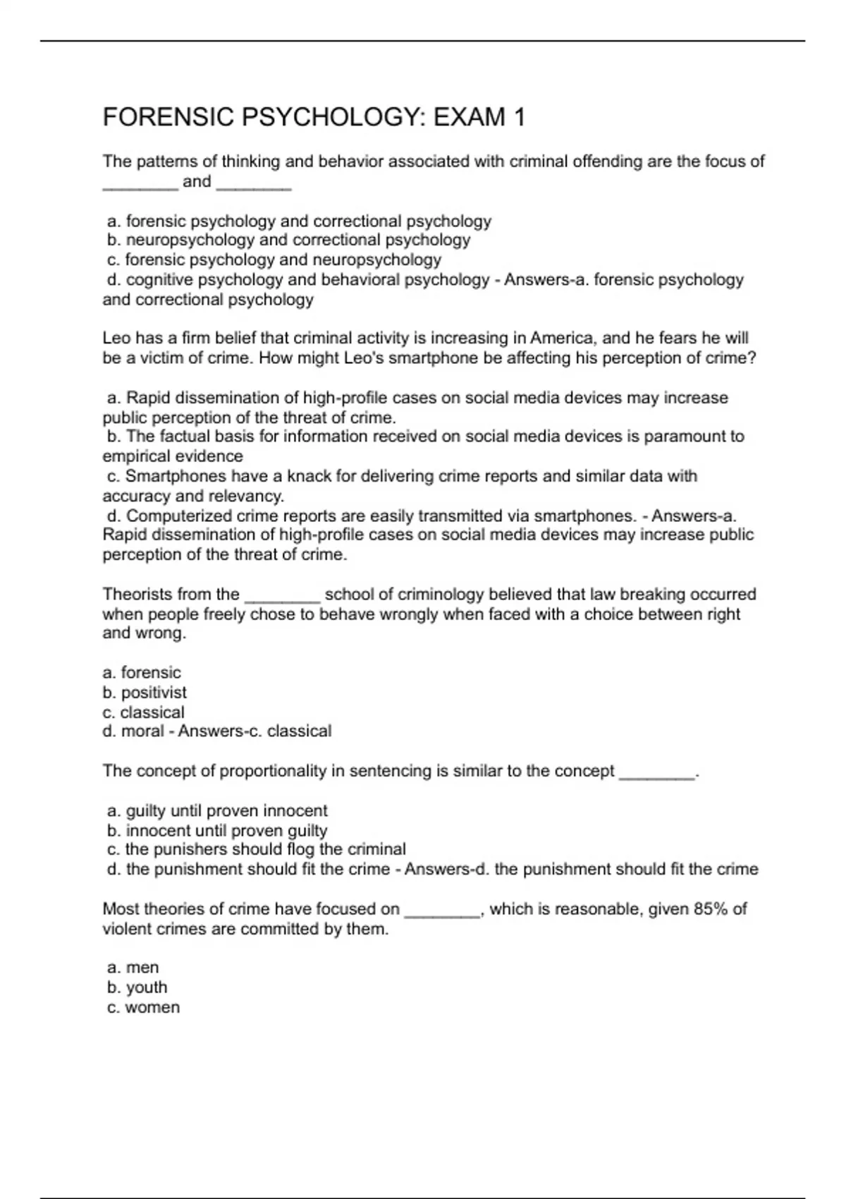 FORENSIC PSYCHOLOGY EXAM 1