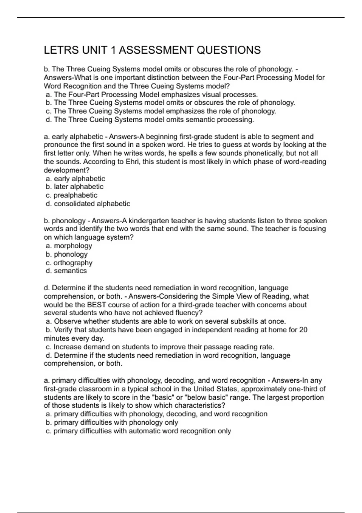 LETRS UNIT 1 ASSESSMENT QUESTIONS