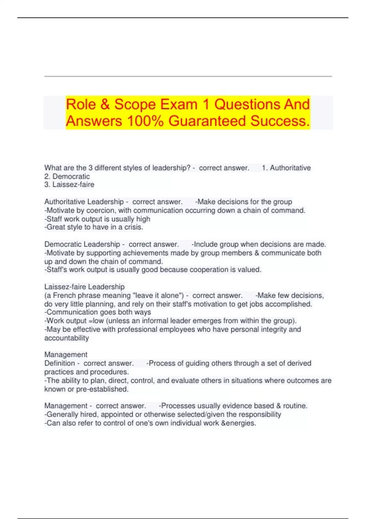 Answers 100% Guaranteed Success.
