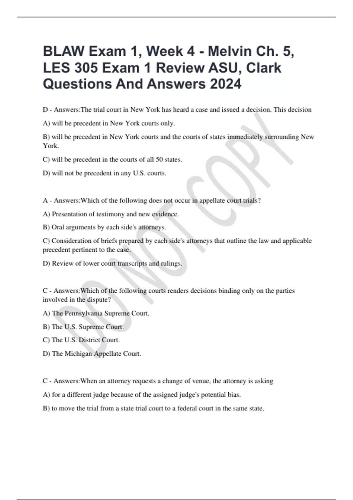BLAW Exam 1, Week 4 - Melvin Ch. 5, LES 305 Exam 1 Review ASU, Clark Questions And Answers 2024.