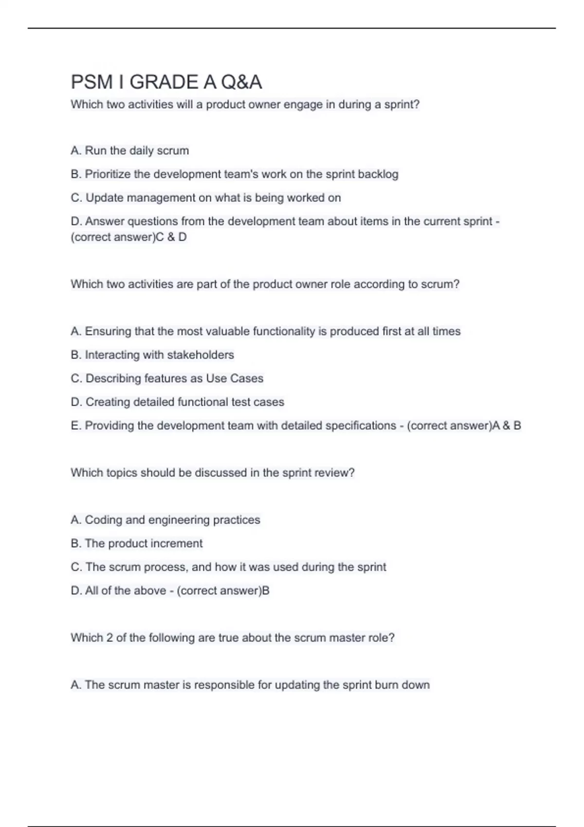 PSM I GRADE A Q&A