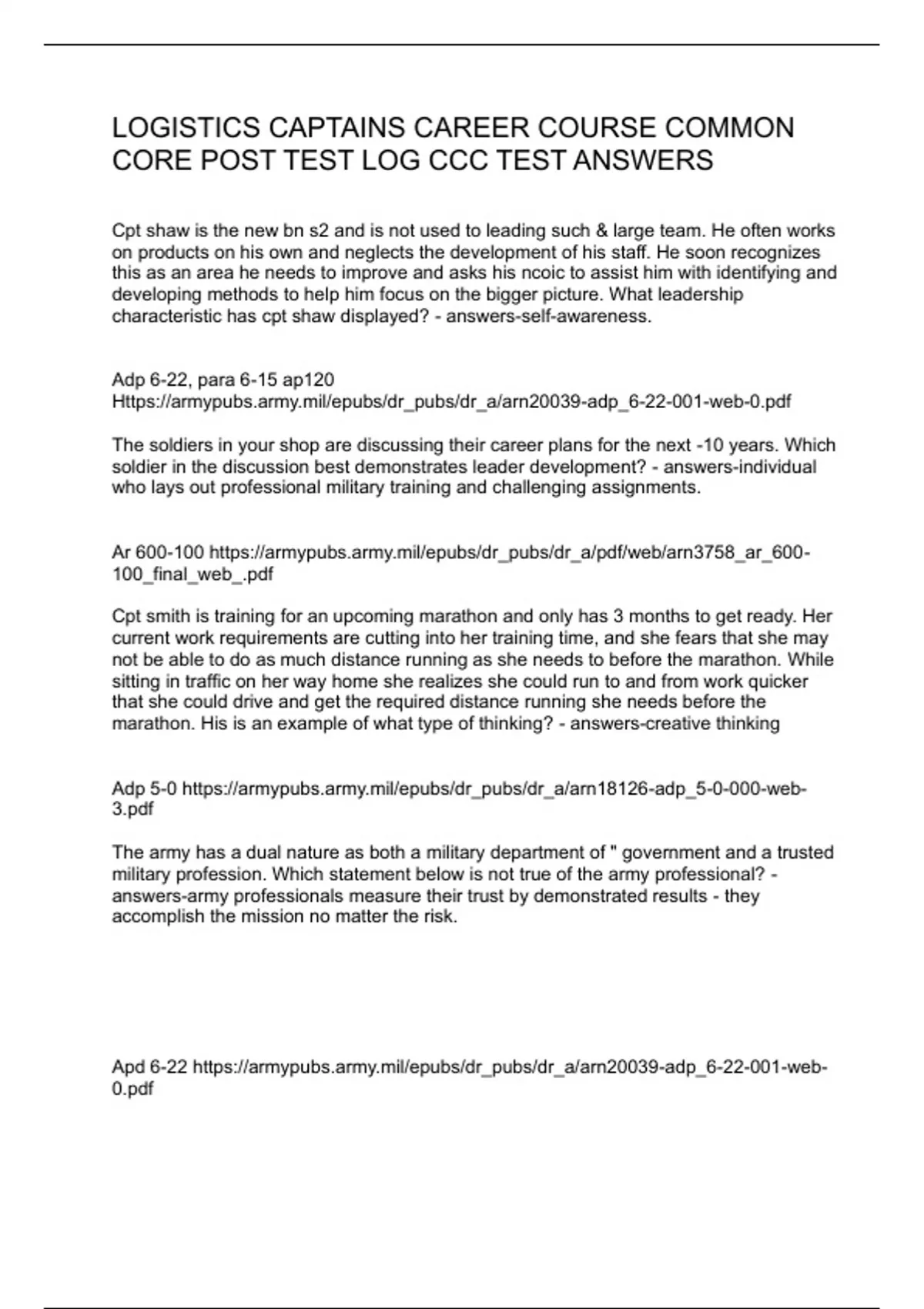 LOGISTICS CAPTAINS CAREER COURSE COMMON CORE POST TEST LOG CCC TEST ANSWERS