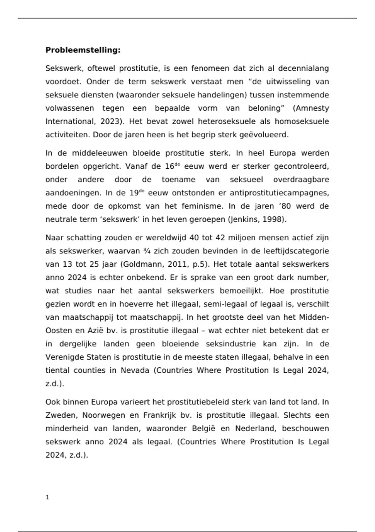 voordoet. Onder de term sekswerk verstaat men “de uitwisseling van