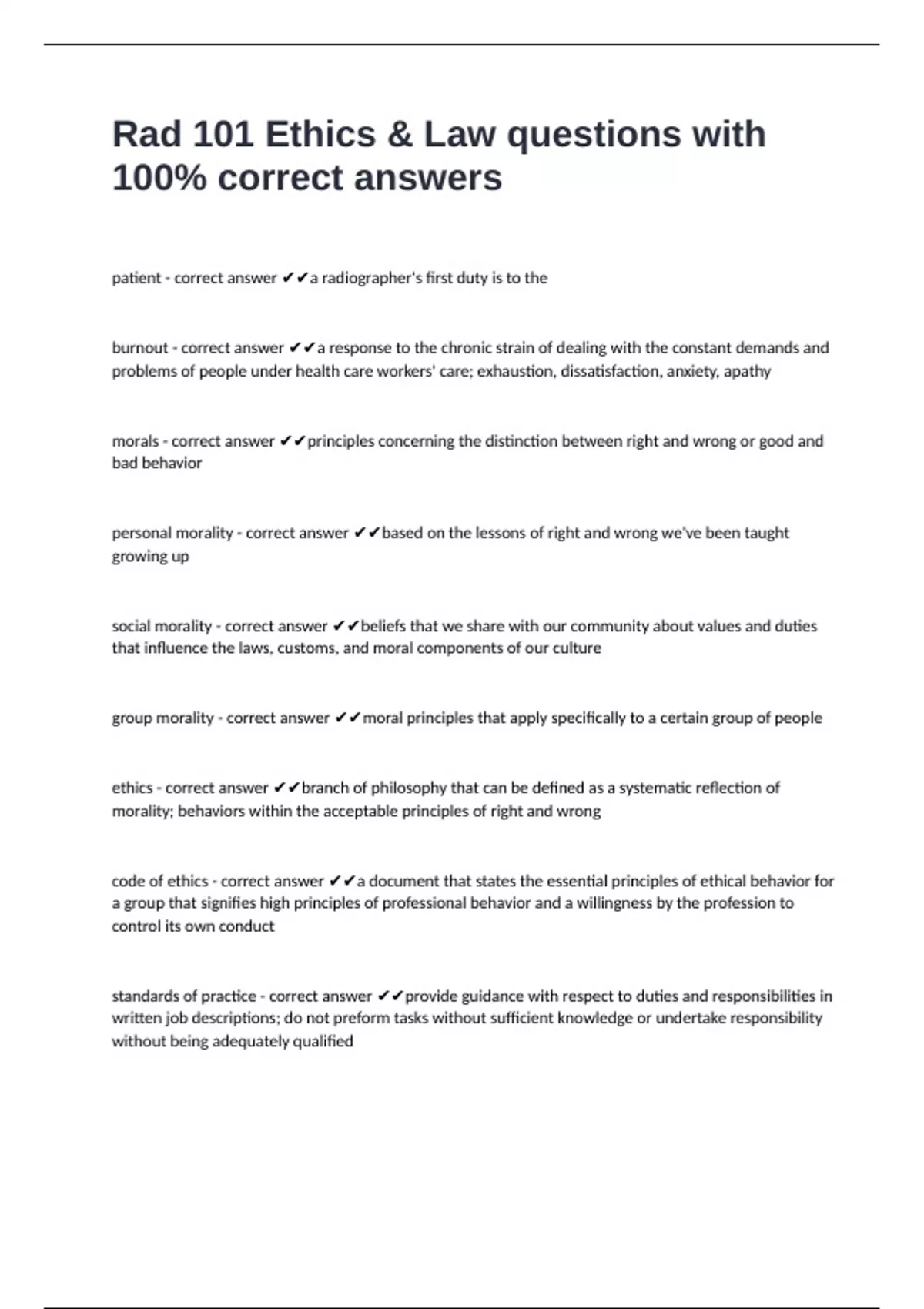 Rad 101 Ethics & Law questions with