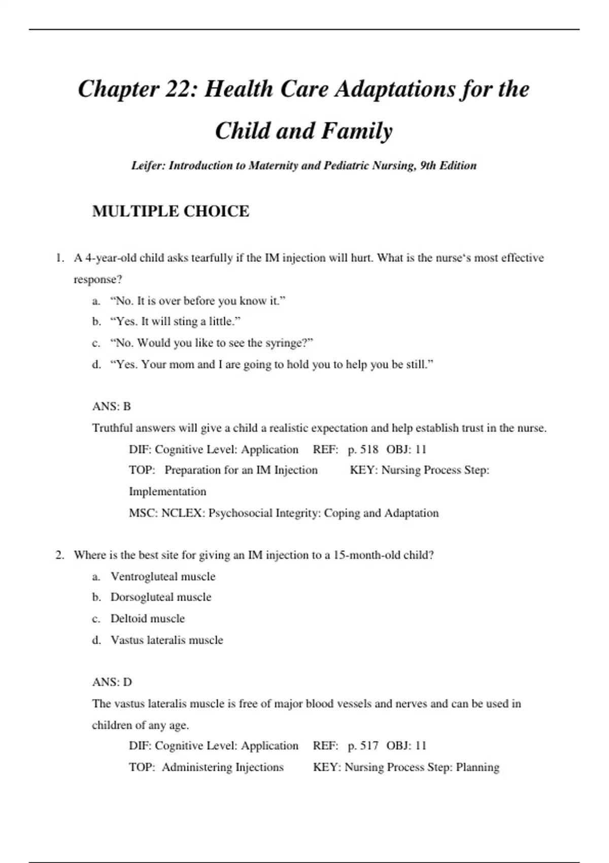 1. A 4-year-old child asks tearfully if the IM injection will hurt. What is the nurse‘s most effective
