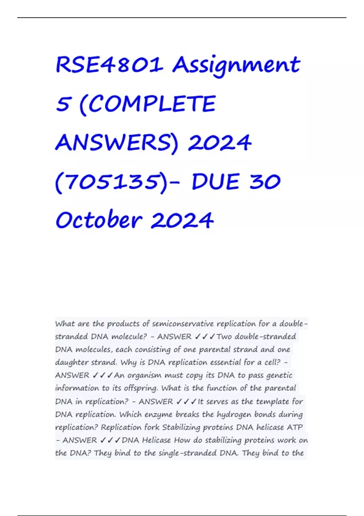 DNA in replication? - ANSWER ✓✓✓It serves as the template for