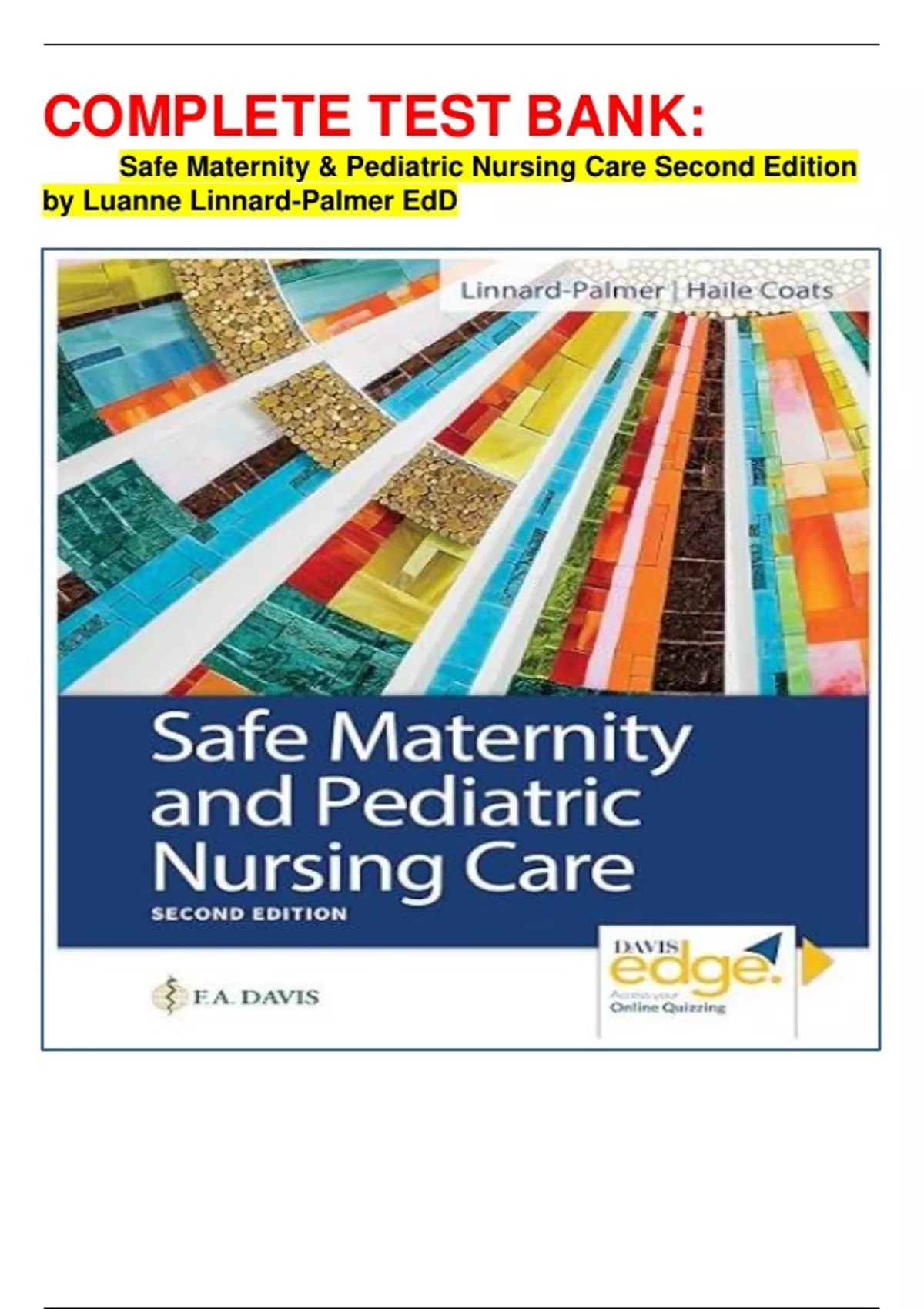 COMPLETE TEST BANK: Safe Maternity & Pediatric Nursing Care Second Edition by Luanne Linnard-Palmer EdD