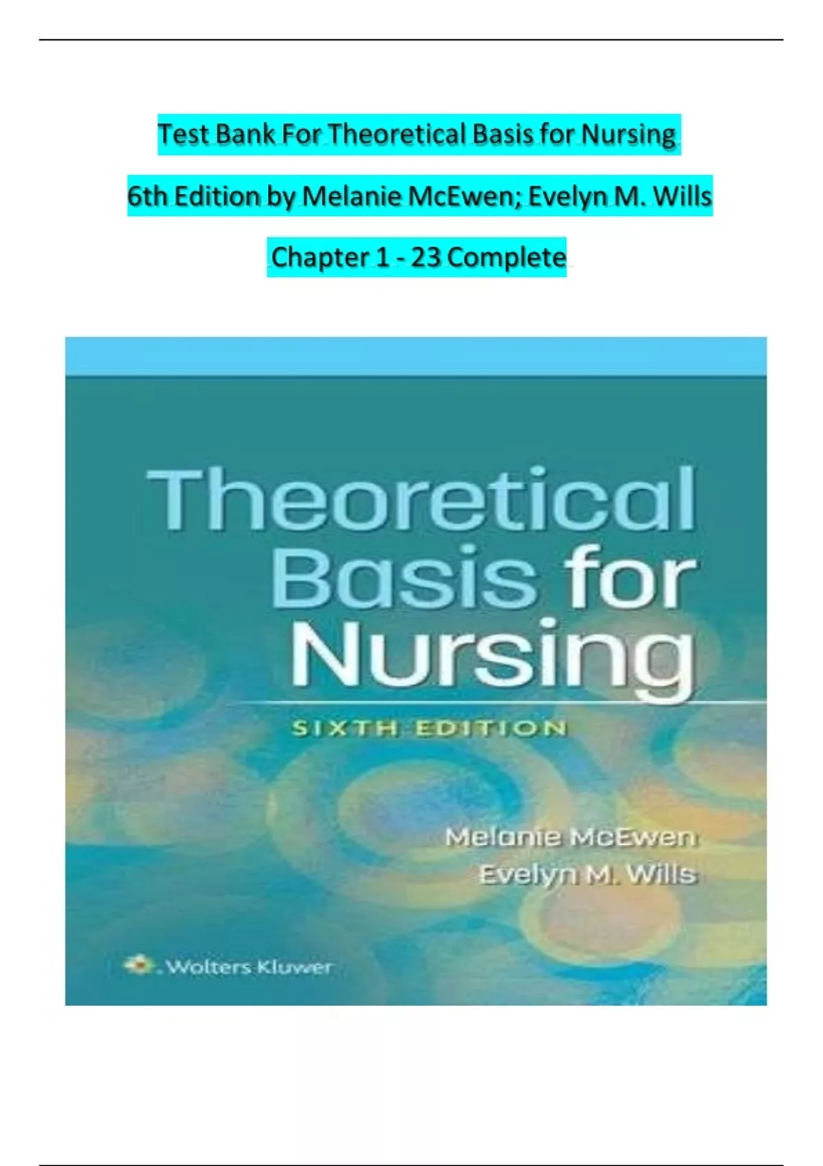 Test Bank For Theoretical Basis for Nursing 6th Edition by Melanie McEwen; Evelyn M. Wills Chapter 1 - 23 Complete