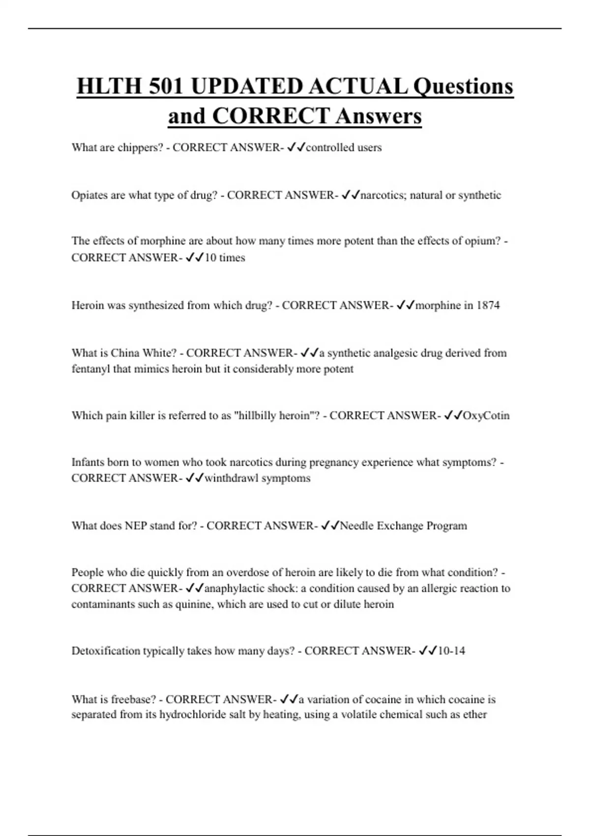 Opiates are what type of drug? - CORRECT ANSWER- ✔✔narcotics; natural or synthetic