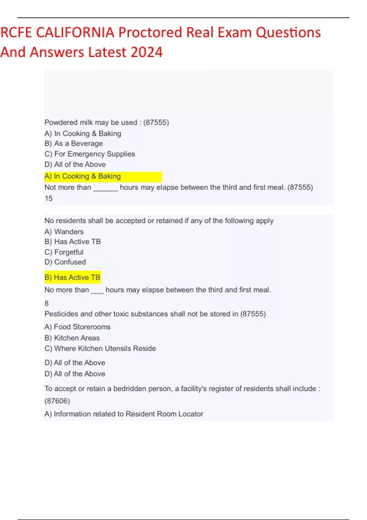 ,RCFE CALIFORNIA Proctored Real Exam Questions