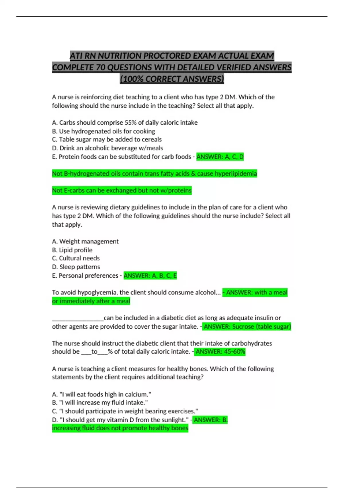 ATI RN NUTRITION PROCTORED EXAM ACTUAL EXAM