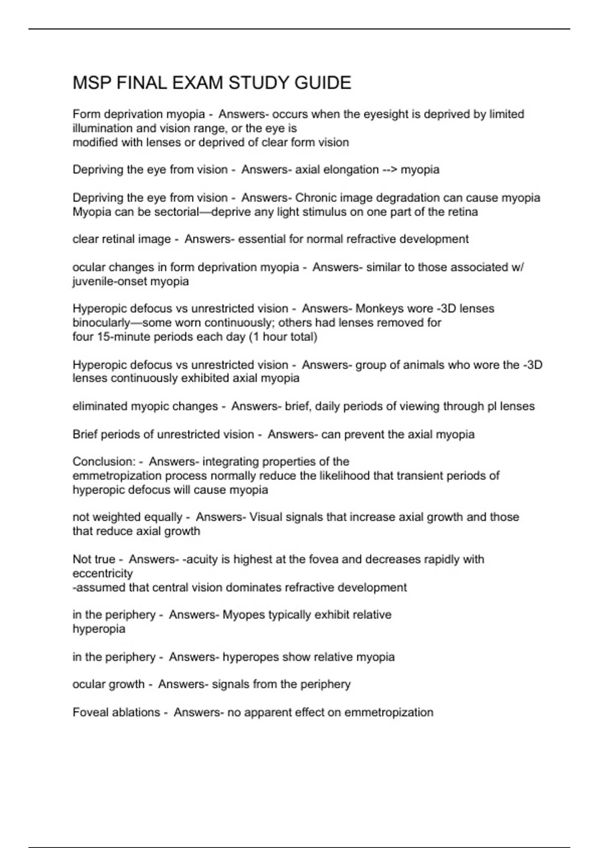 Form deprivation myopia - Answers- occurs when the eyesight is deprived by limited