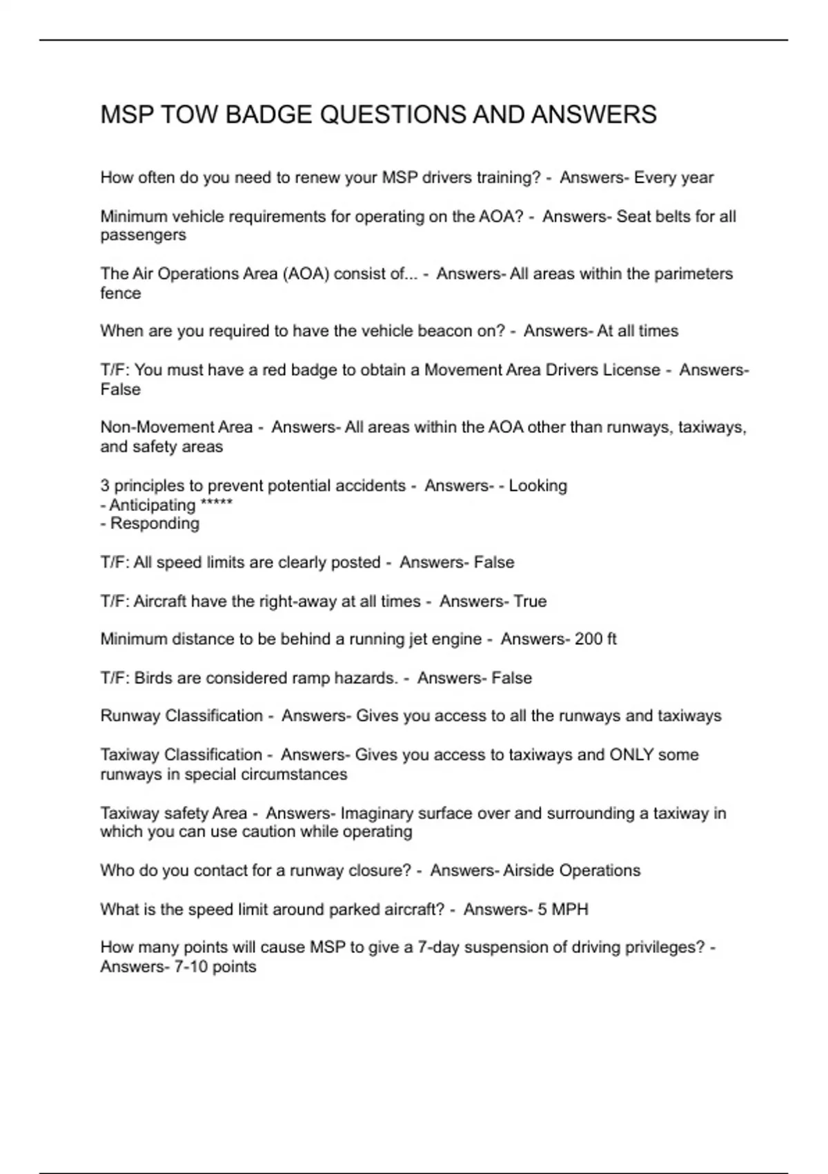 MSP TOW BADGE QUESTIONS AND ANSWERS