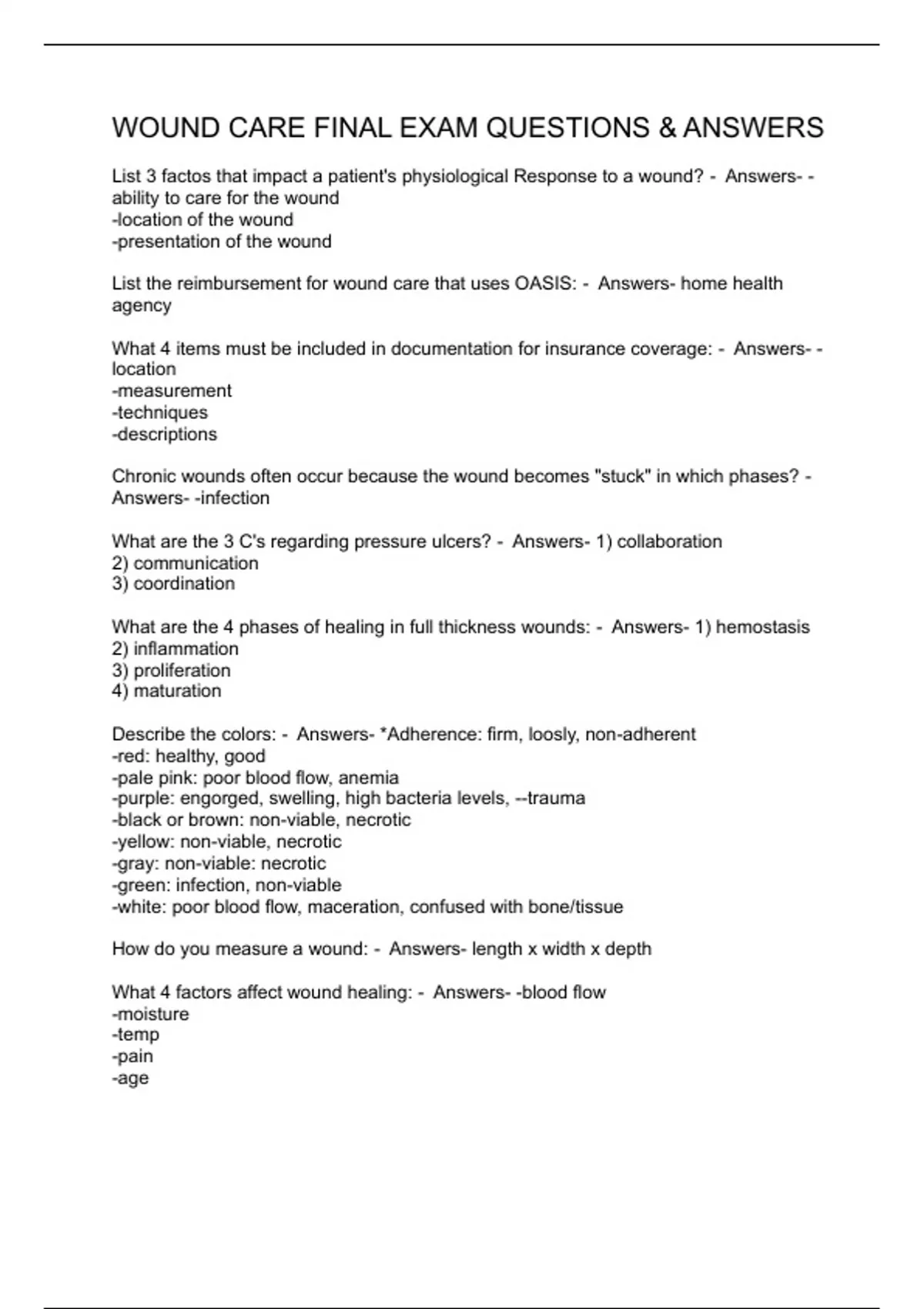 WOUND CARE FINAL EXAM QUESTIONS & ANSWERS