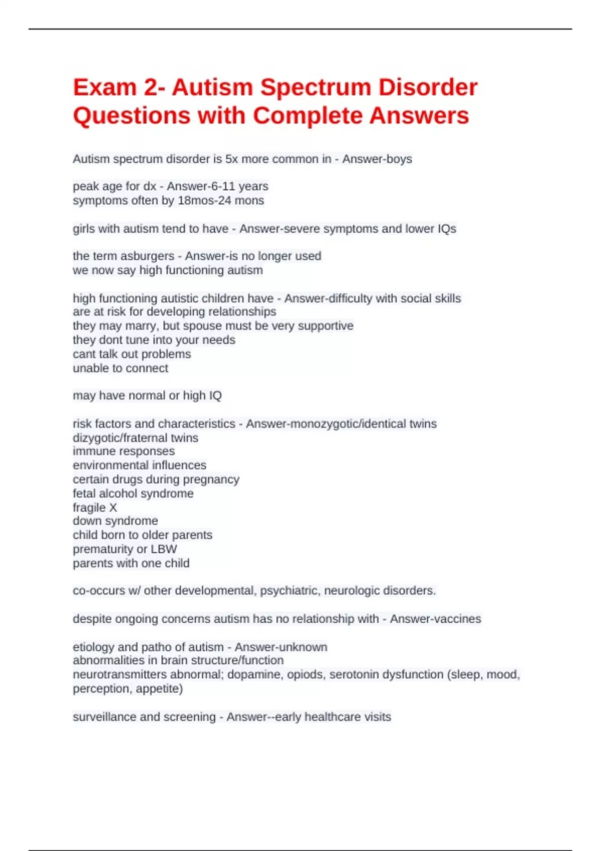 Exam 2- Autism Spectrum Disorder