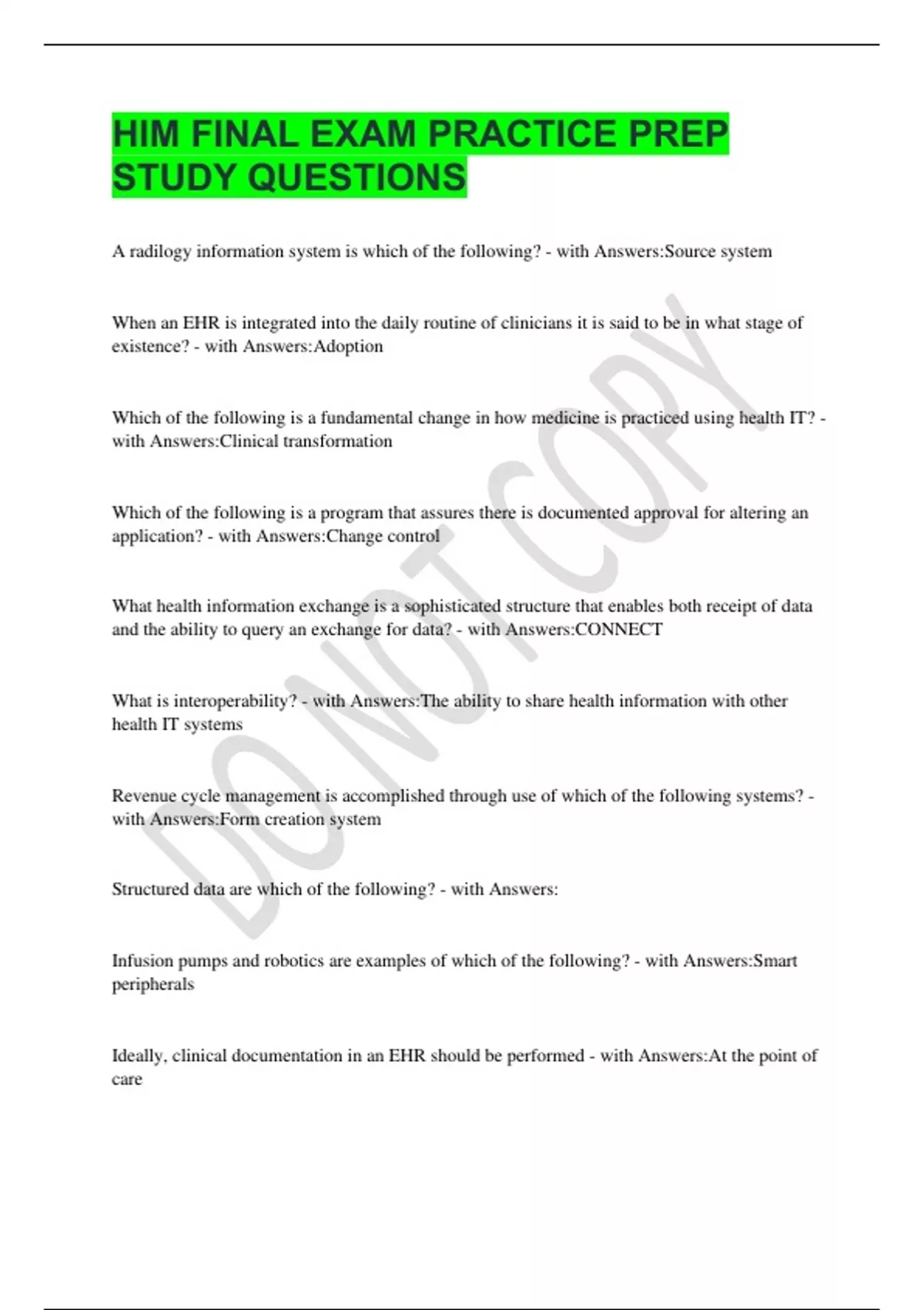 HIM FINAL EXAM PRACTICE PREP