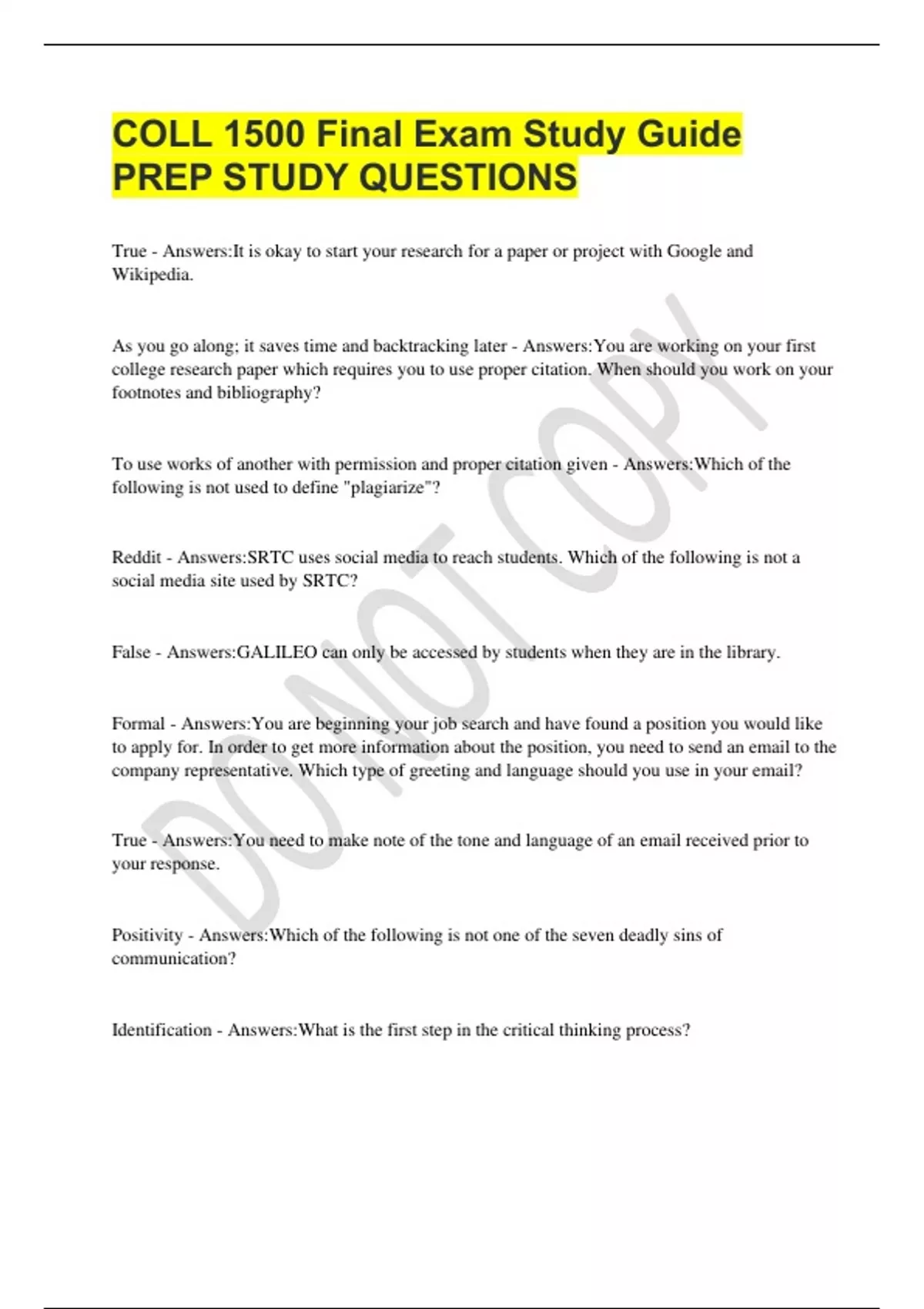 COLL 1500 Final Exam Study Guide PREP STUDY QUESTIONS
