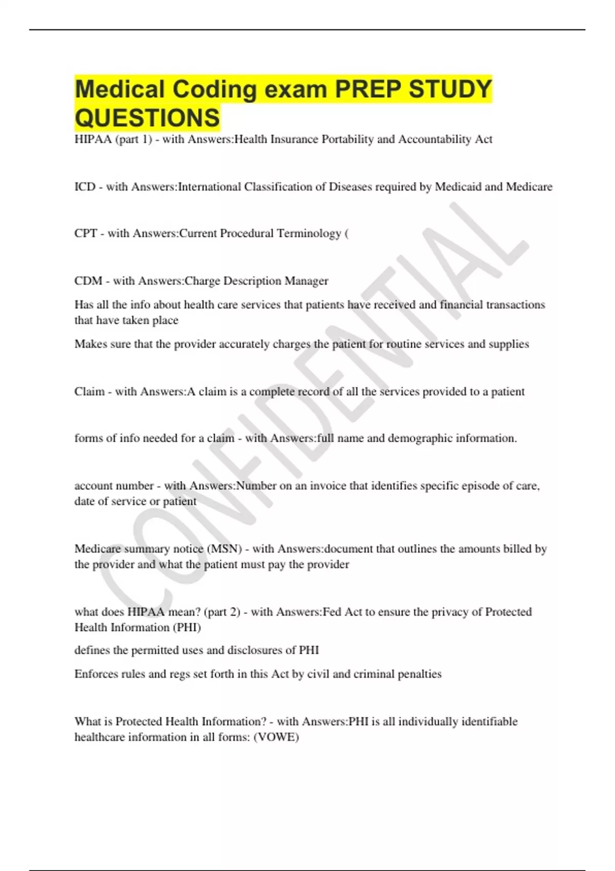 Medical Coding exam PREP STUDY QUESTIONS