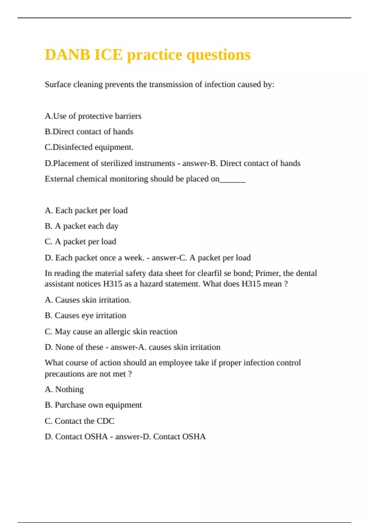 D.Placement of sterilized instruments - answer-B. Direct contact of hands