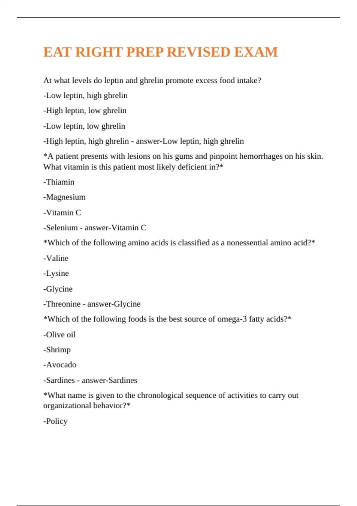 EAT RIGHT PREP REVISED EXAM