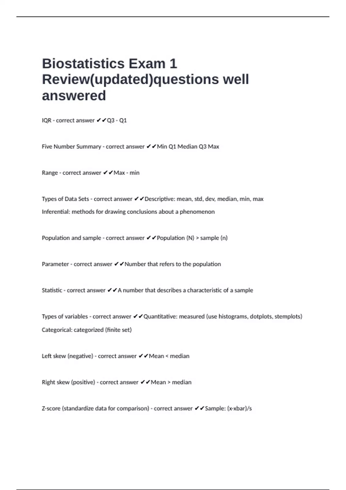 Statistic - correct answer ✔✔A number that describes a characteristic of a sample