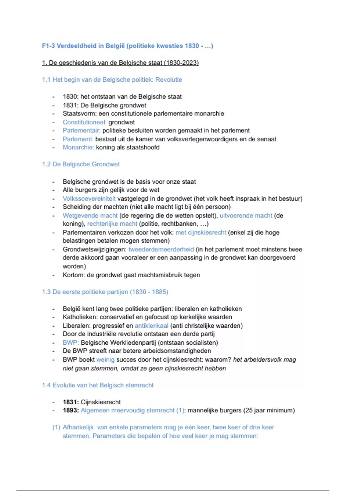 F1-3 Verdeeldheid in België (politieke kwesties 1830 - …)