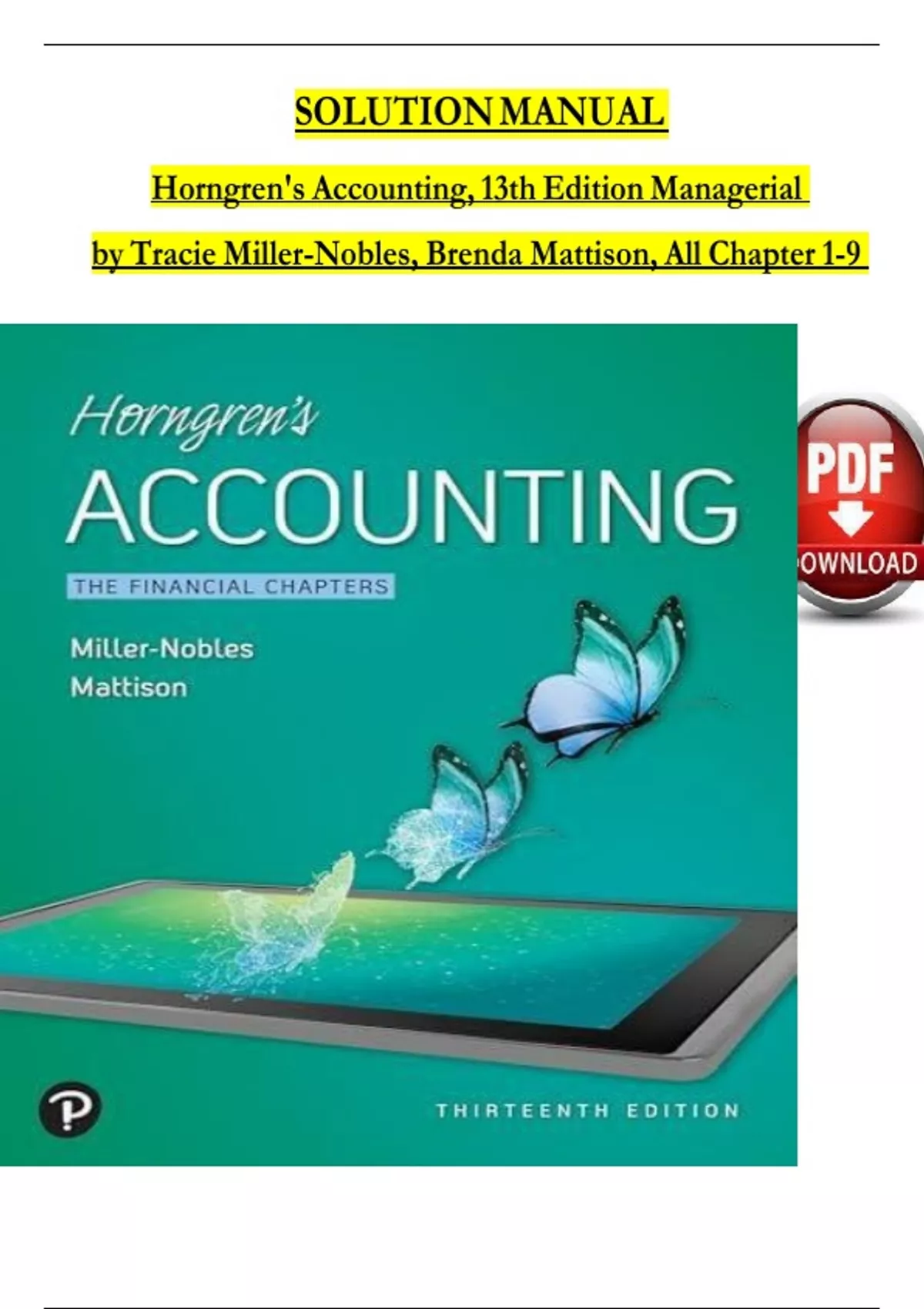 Solution Manual for Horngren's Accounting, The Managerial Chapters, 13th Edition By Tracie Miller-Nobles, Brenda Mattison, Verified Chapters 1 - 9, Complete Newest Version
