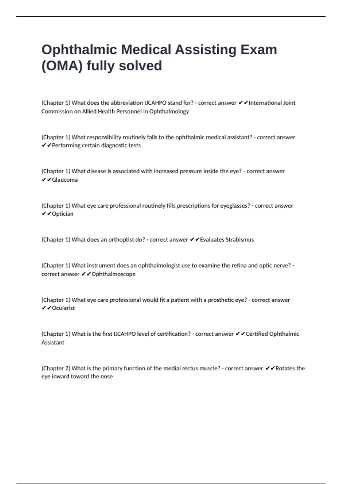 (Chapter 1) What is the first IJCAHPO level of certification? - correct answer ✔✔Certified Ophthalmic