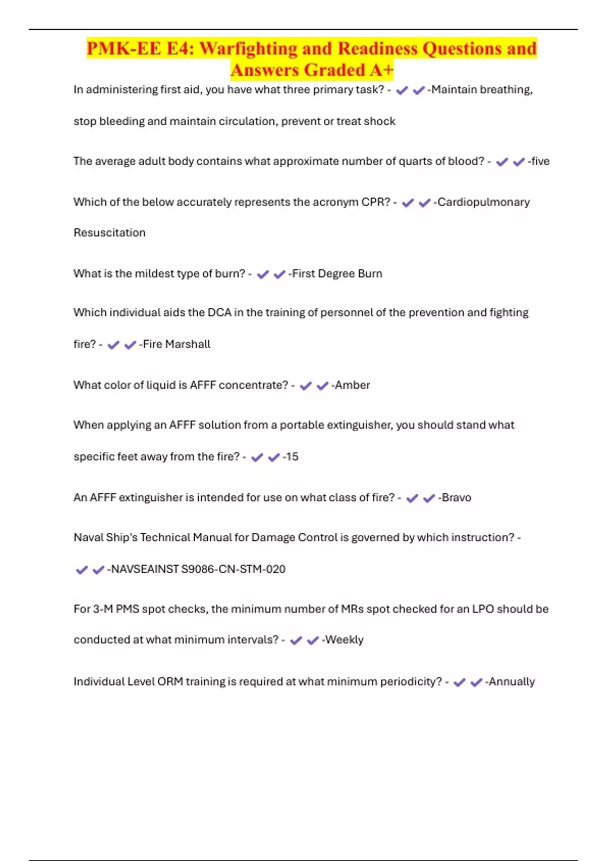 PMK-EE E4: Warfighting and Readiness Questions and Answers Graded A+