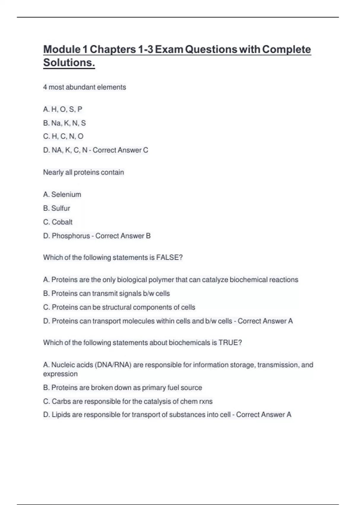 D. Proteins can transport molecules within cells and b/w cells - Correct Answer A