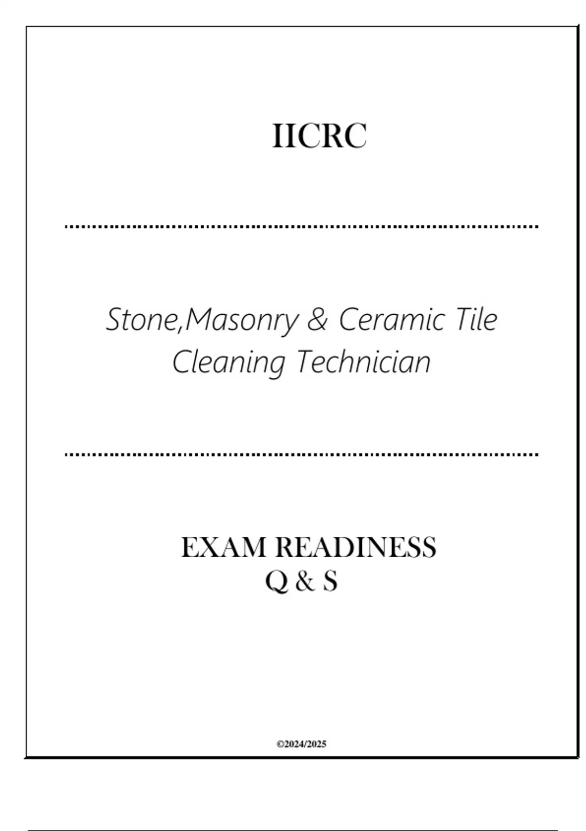 IICRC (Stone, Masonry & Ceramic Tile Cleaning Technician) Exam Readiness Q & S 2024