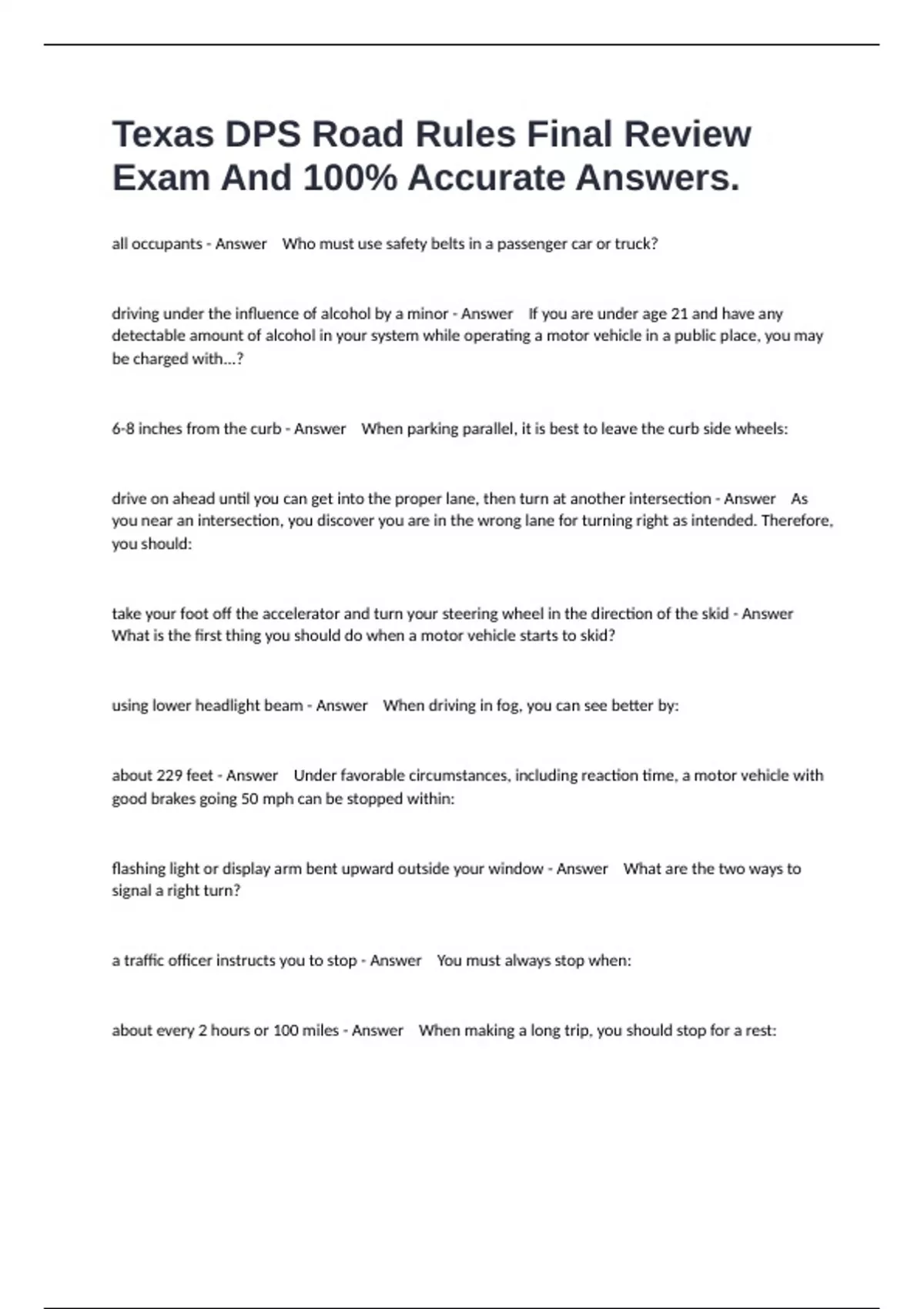 Texas DPS Road Rules Final Review Exam And 100% Accurate Answers.