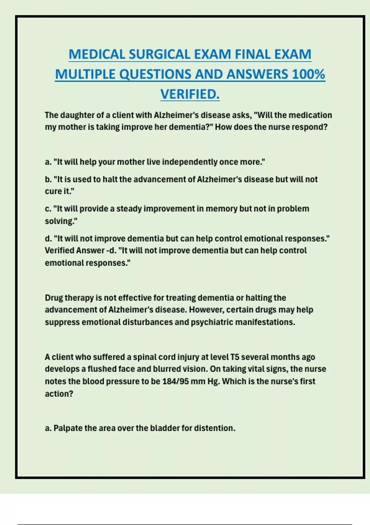 The daughter of a client with Alzheimer's disease asks, "Will the medication