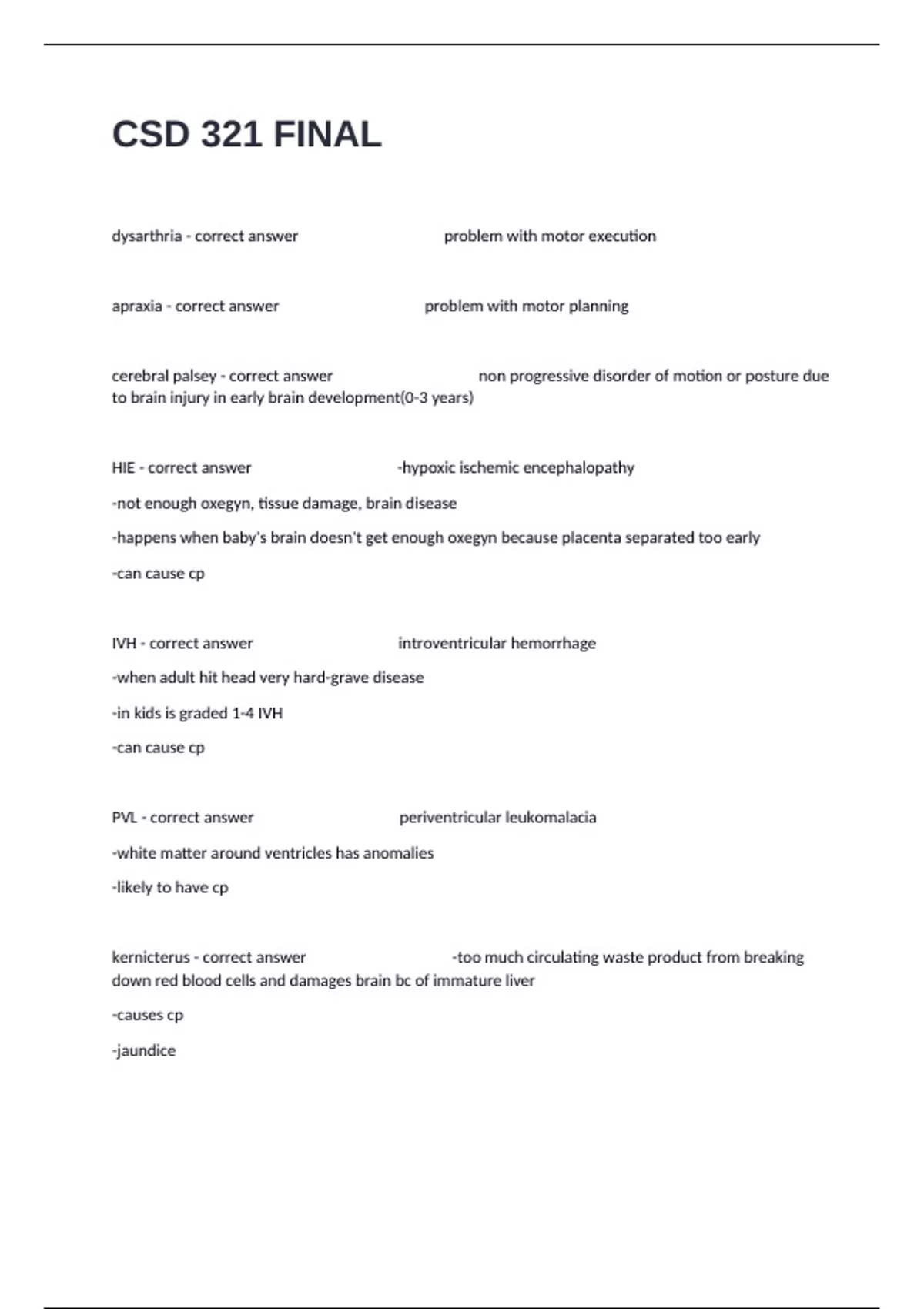 cerebral palsey - correct answer non progressive disorder of motion or posture due