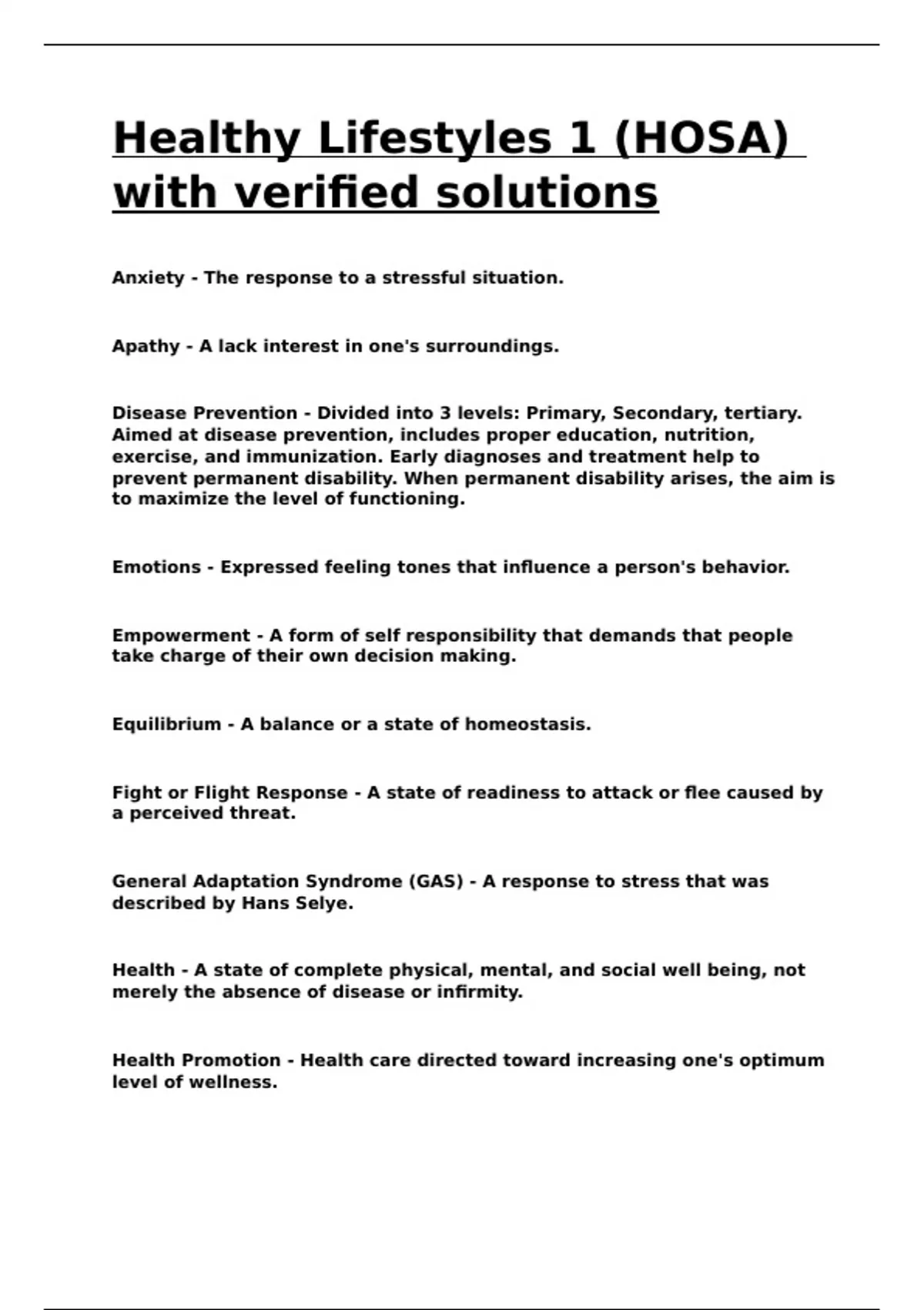 Healthy Lifestyles 1 (HOSA) with verified solutions