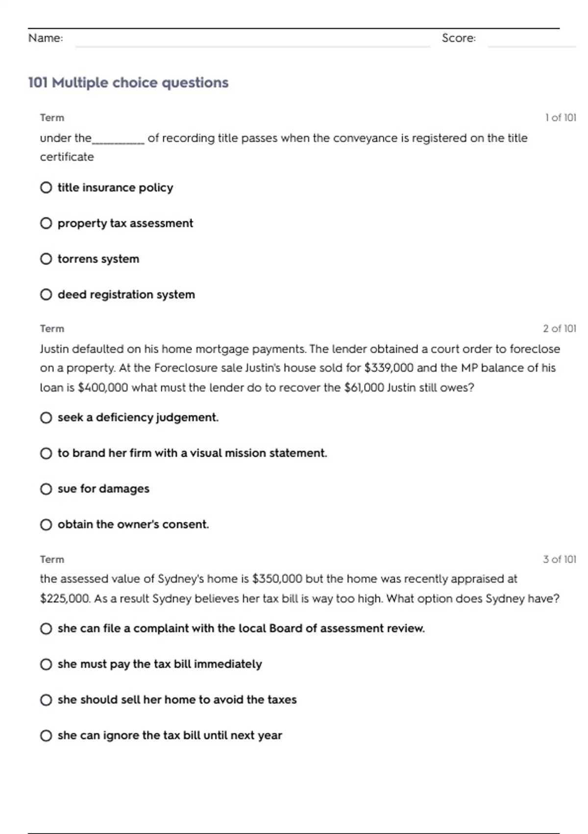 on a property. At the Foreclosure sale Justin's house sold for $339,000 and the MP balance of his