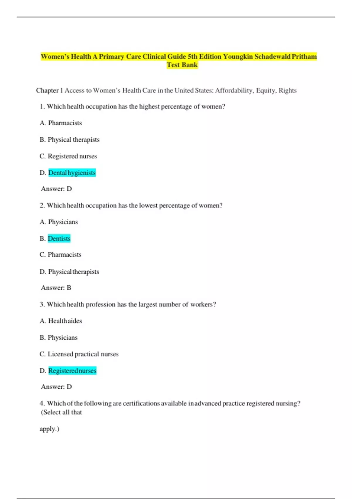 4. Which of the following are certifications available in advanced practice registered nursing?