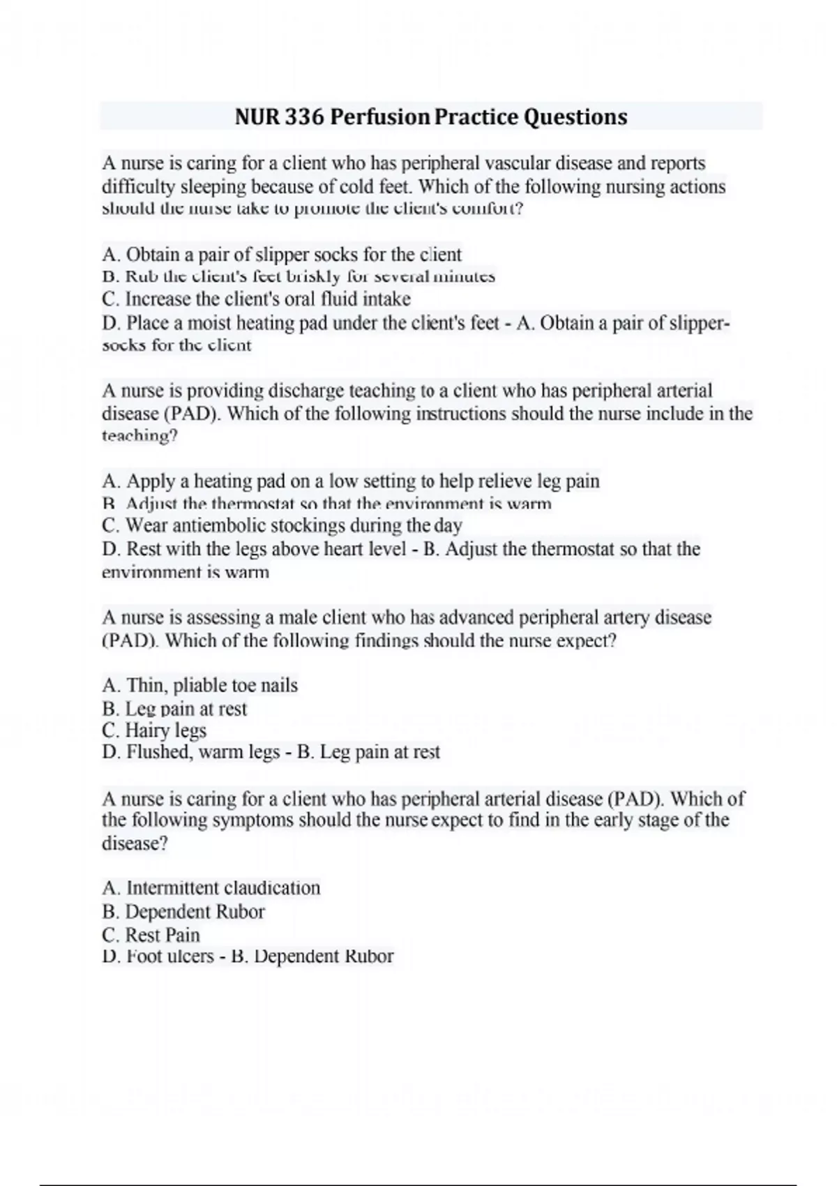 NUR 336 Perfusion Practice Questions
