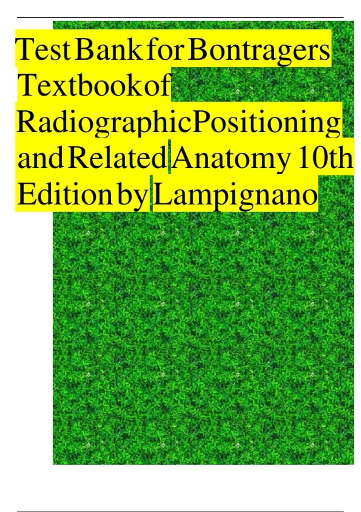 Test Bank for Bontrager's Textbook of Radiographic Positioning and Related Anatomy 10th Edition By John Lampignano; Leslie E. Kendrick Chapter 1-20 Complete Guide A+