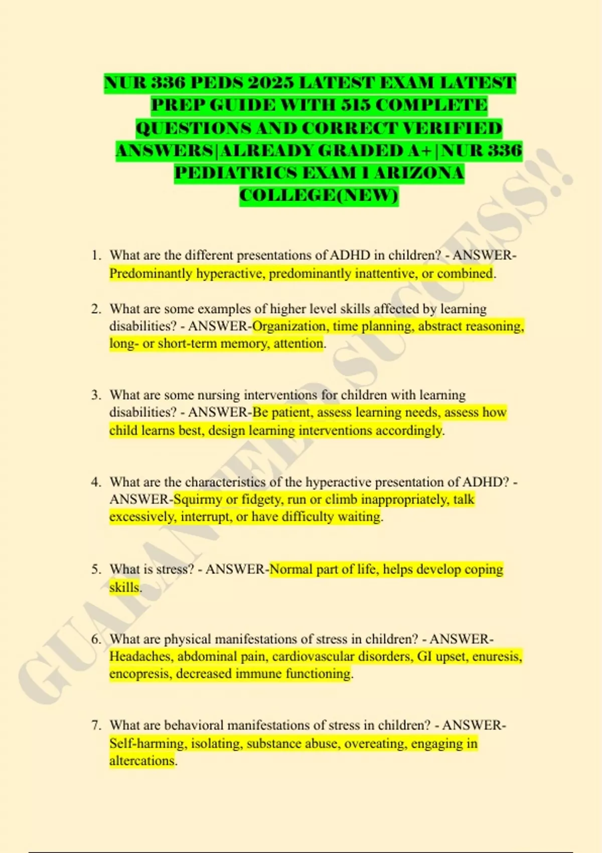 ANSWERS|ALREADY GRADED A+|NUR 336