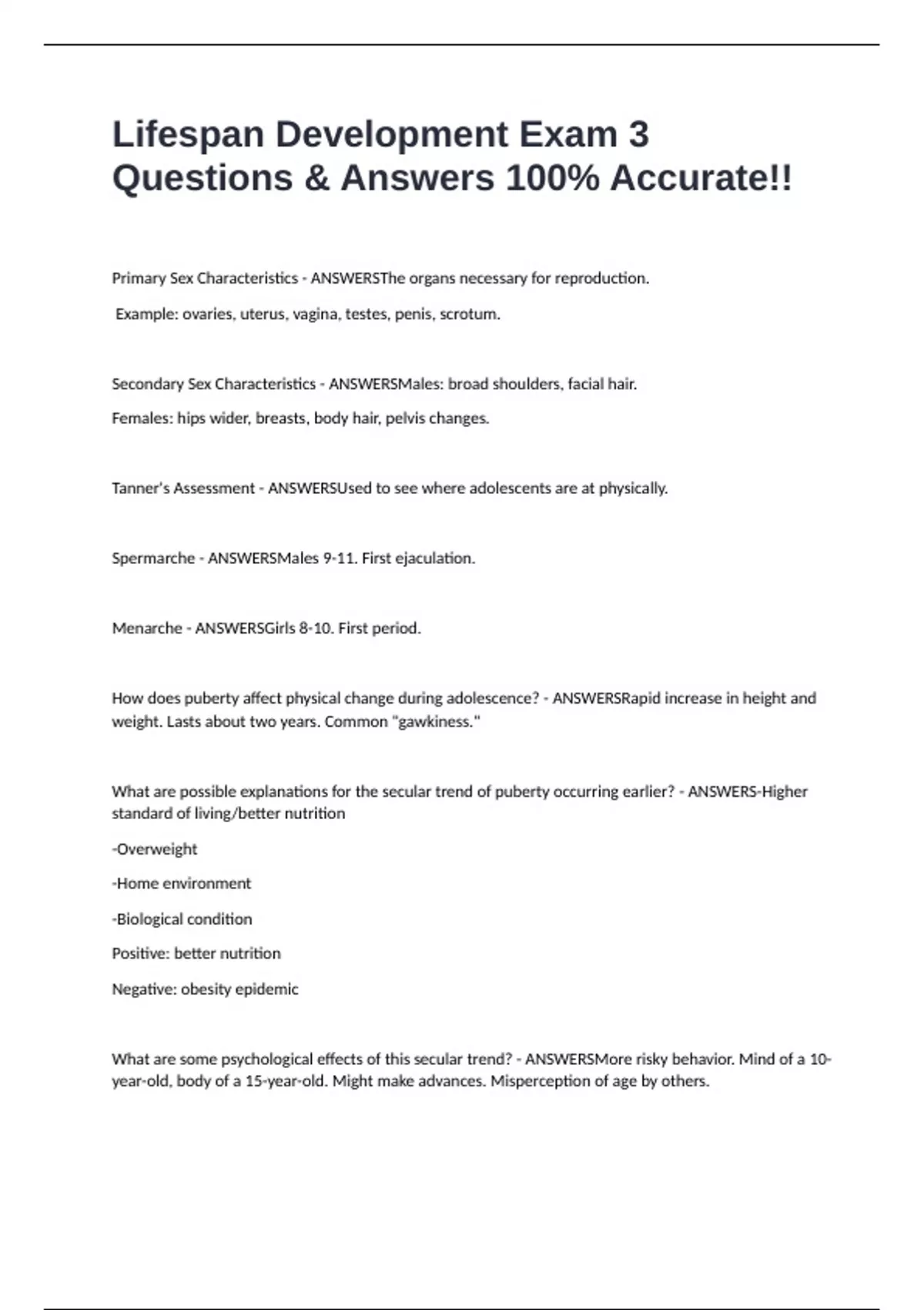 Lifespan Development Exam 3 Questions & Answers 100% Accurate!!