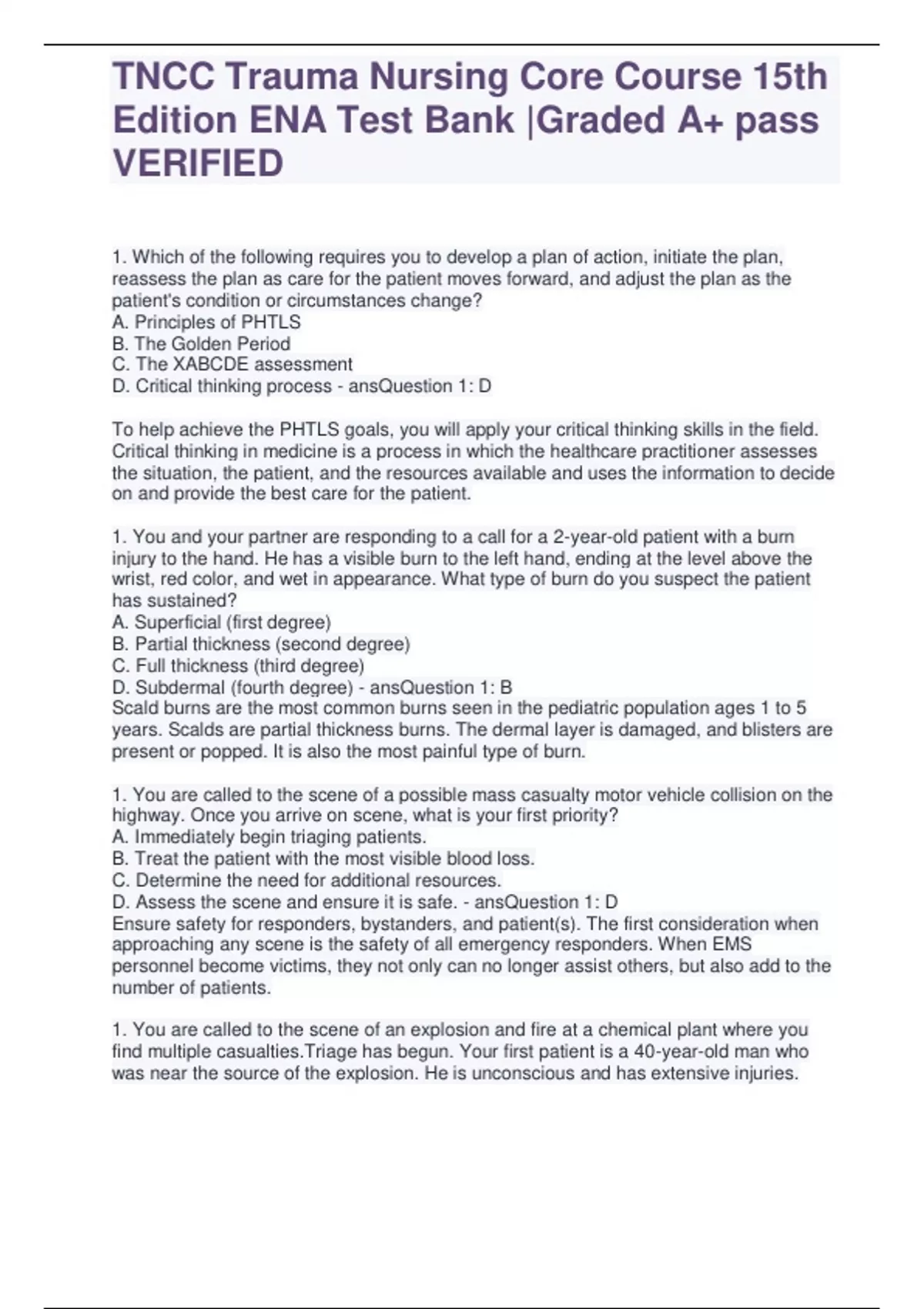 D. Assess the scene and ensure it is safe. - ansQuestion 1: D