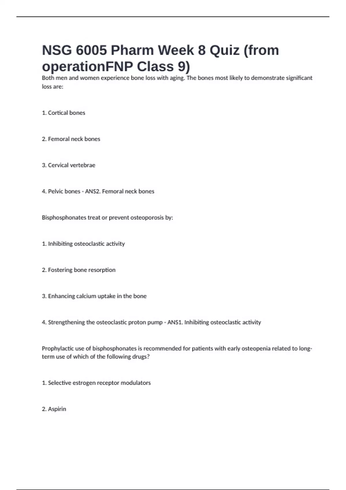 NSG 6005 Pharm Week 8 Quiz (from operationFNP Class 9)
