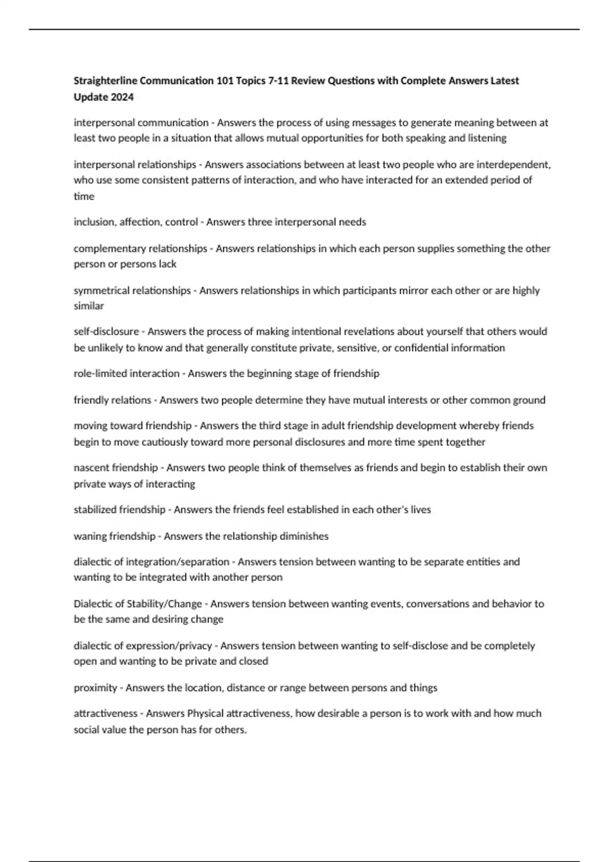 interpersonal relationships - Answers associations between at least two people who are interdependent,