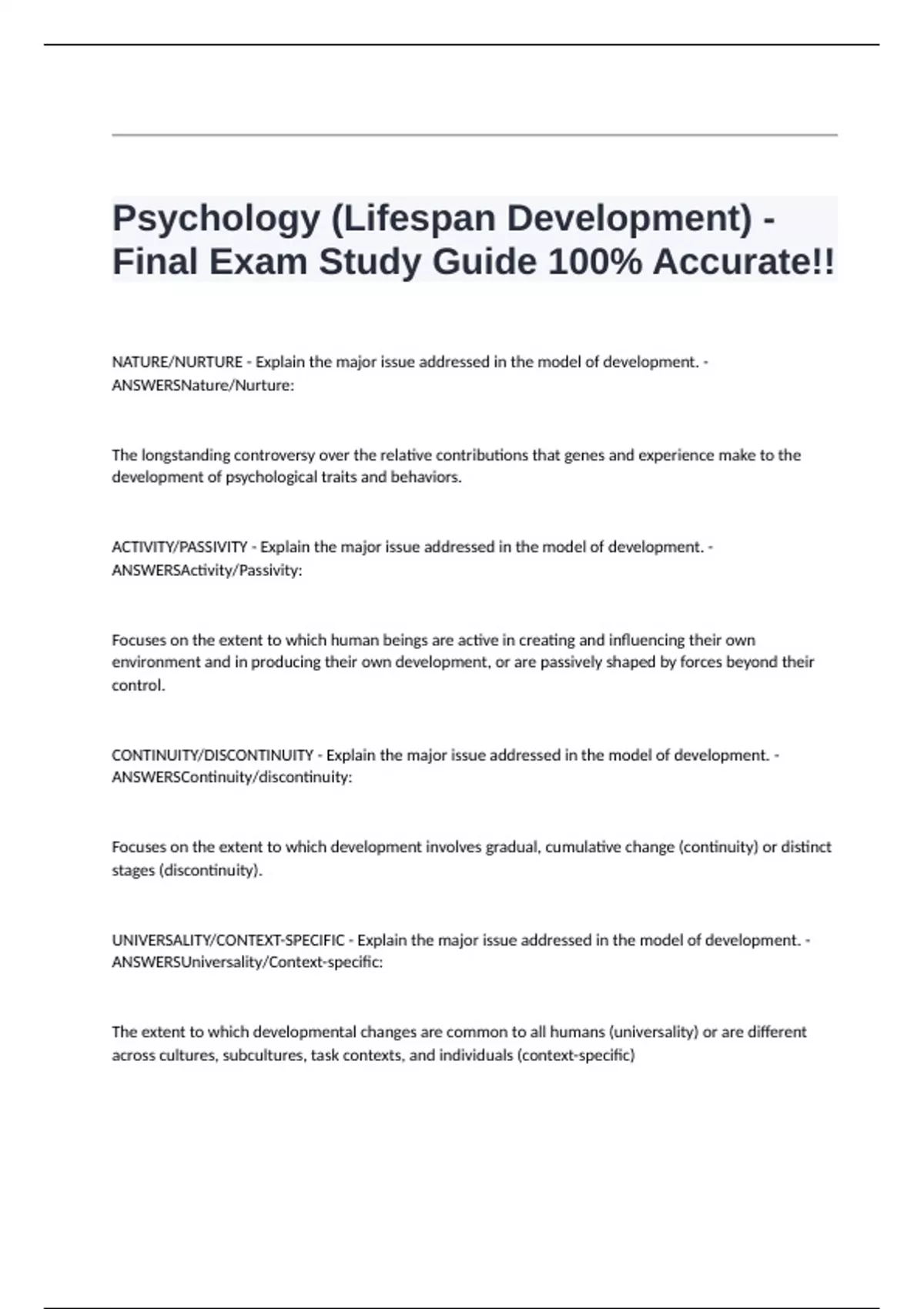 Final Exam Study Guide 100% Accurate!!