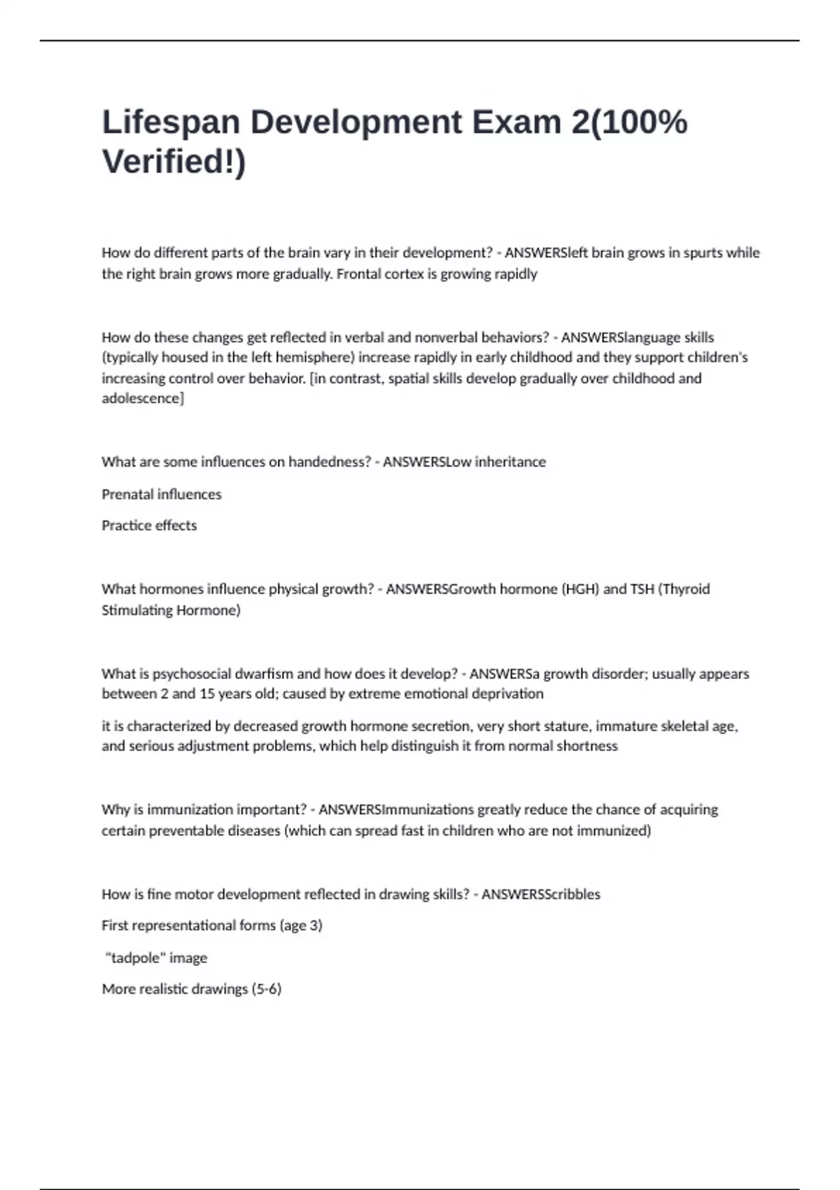 Lifespan Development Exam 2(100% Verified!)